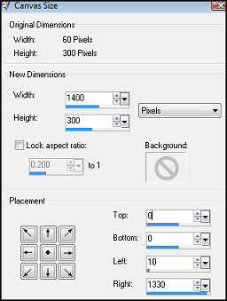 19. Image/Canvas Size and Canvas size 1400x300...Click on the Left Middle Arrow for Placement and then change the Left to 10: